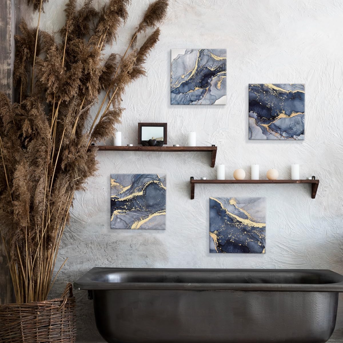 BIWSHA Home Decor, Abstract Marble Texture Blue Gold Watercolor Wall Art Canvas Wall Decor, Modern Art Print for Home Bedroom Office Wall Decoration, 12x12 Inch Set of 4